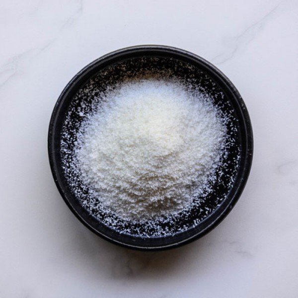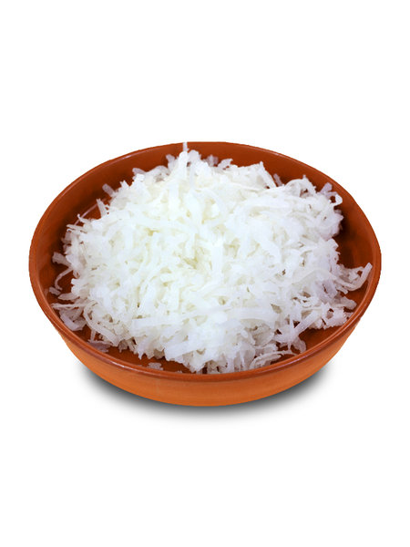 Golden berries, papaya, pineapple, strawberries, cantaloupe, dried coconut threads, black raisins and fig
