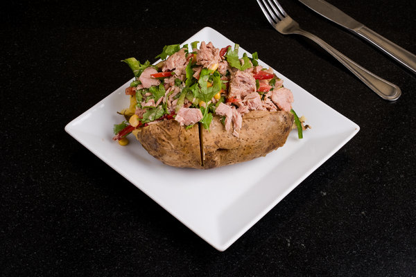 Tuna, pasta, corn, parsley, green pepper, tomatoes, lemon dressing