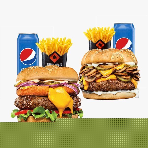 2 juicy beef patties with 2 layers of cheddar cheese and creamy Buffalo sauce