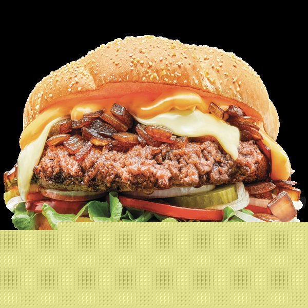 Grilled burger topped with sweet onion, BBQ sauce, creamy Charbroiled sauce and Swiss cheese