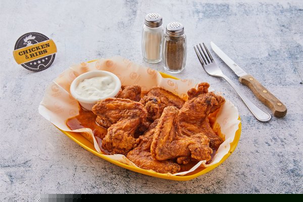 Kicked up sriracha and chili buffalo sauce, served with blue cheese dressing