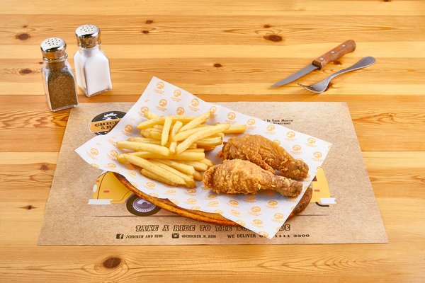 Flame grilled chicken breasts, brushed with tangy BBQ sauce, served with 2 sides