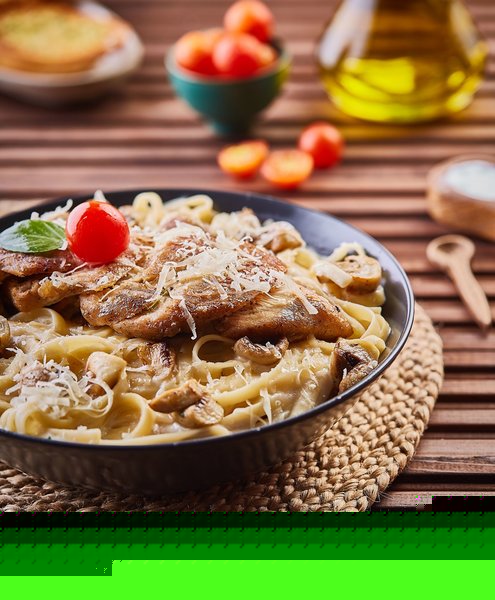 Chicken breast slightly simmers in fresh cream, lemon juice with lemon zest topped with fresh dill