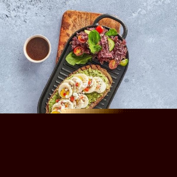 Scrambled eggs, with pastrami and fresh tomato served with our grilled tortilla and roasted potato and side of fresh green salad