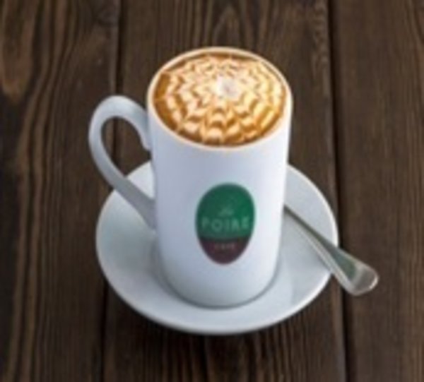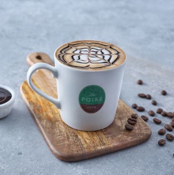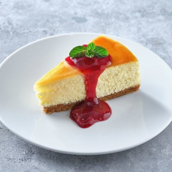 Freshly baked croissant filled with pastry cream and topped with your choice of strawberry sauce or caramel sauce