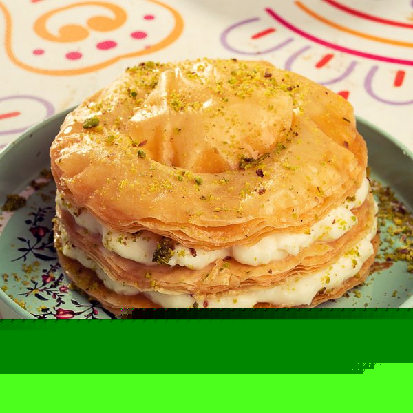 Plain kahk, kahk with malbn, kahk with ajwa, vanilla petit four with pistachio, petit four with hazelnut chocolate, ghouriba with pistachio, vanilla biscuit, gift wrapped