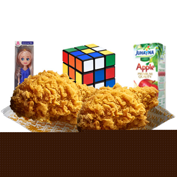 Kids Broast2 chicken drumsticks pieces, fries, juice and toy |