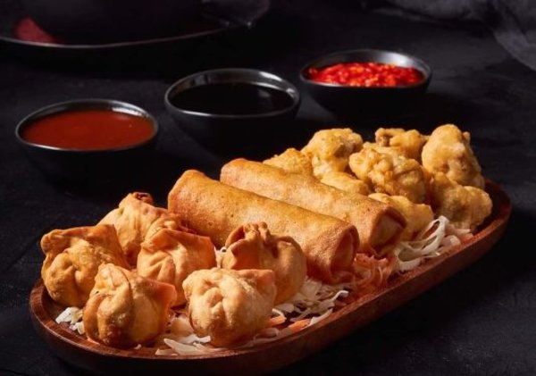 Peking rolls (2 pieces from one type), fried won ton (beef or chicken 6 pieces) and crispy mushroom