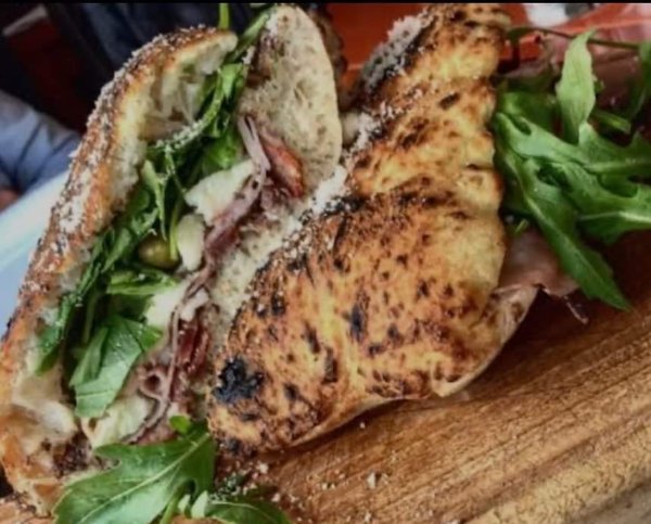 Pepperoni, beef bacon, beef salami, mozzarella cheese, parmesan cheese, Italian basil, rucola and Sapori tomato sauce