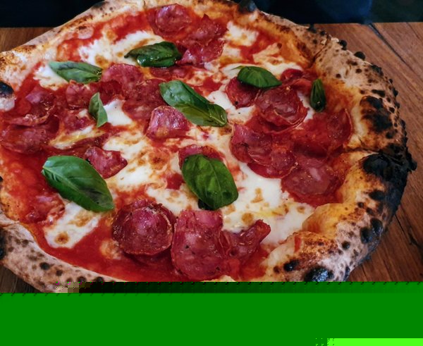 Sapori tomato sauce, superior beef salami, homemade mozzarella cheese, Italian basil and organic cherry tomato