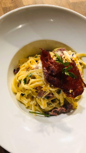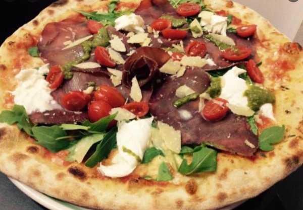 Sapori tomato sauce, superior bersoloa beef, organic cherry tomato, fresh rucola, Italian basil and homemade mozzarella cheese