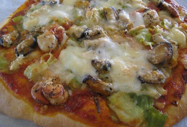 Mussels, garlic, Sapori tomato sauce, homemade mozzarella cheese, Italian basil
