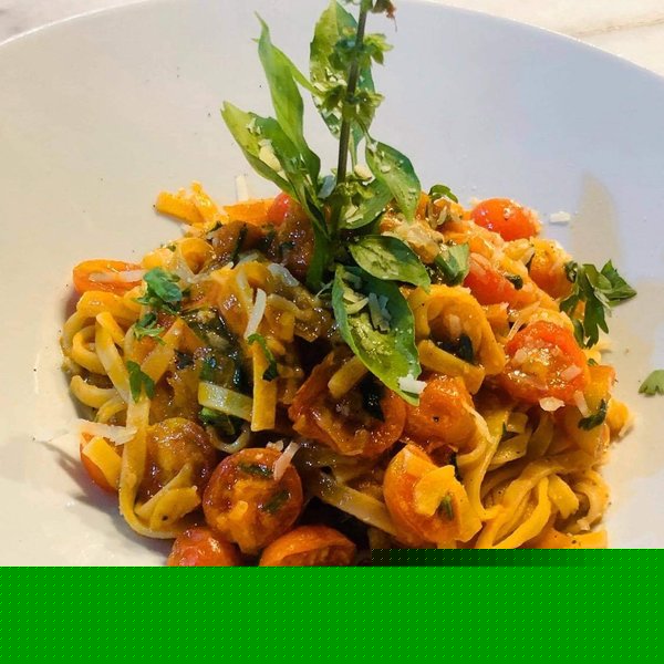 Sapori tomato sauce, onions, organic cherry tomato, Italian basil, homemade mozzarella cheese