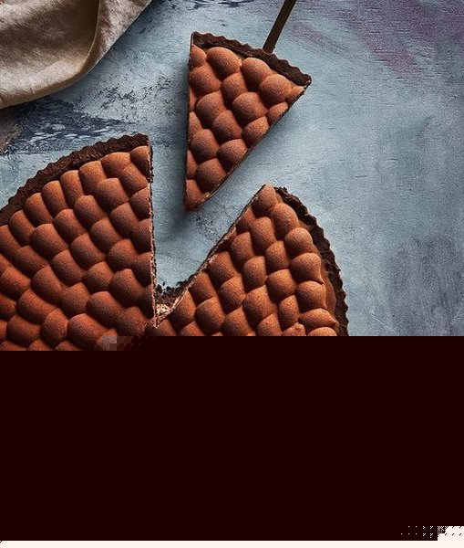 Chocolate sable crust, caramel sauce and chocolate ganache