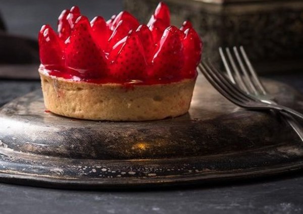 Vanilla sable crust, fresh strawberry and vanilla bean pastry cream